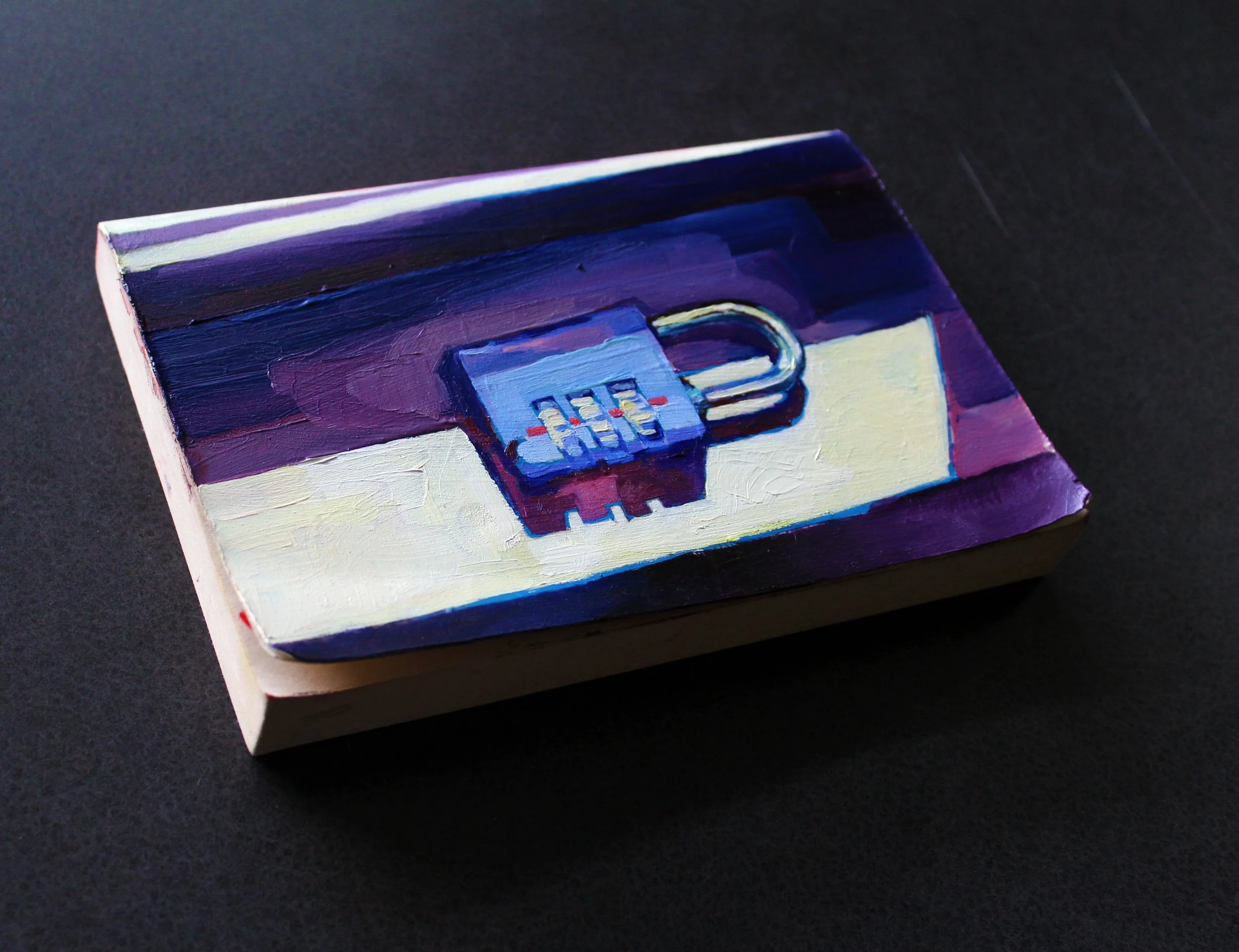 Oil paint on the cover of a book